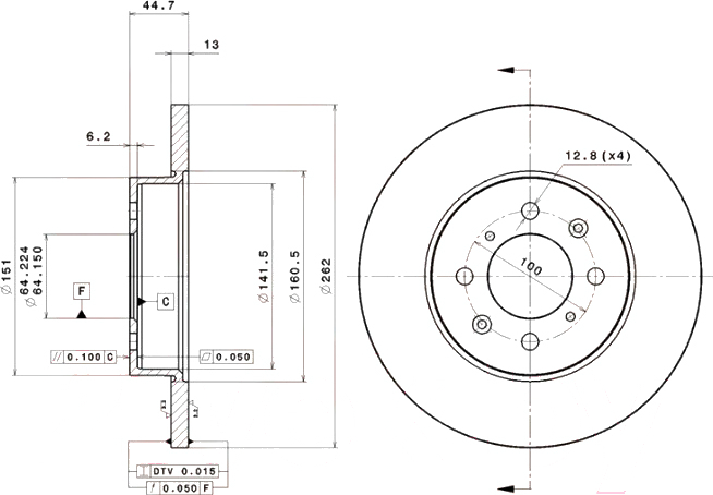 - Диаметр диска/барабана 262 мм