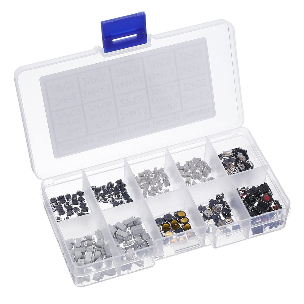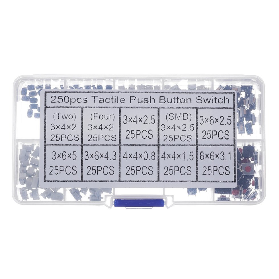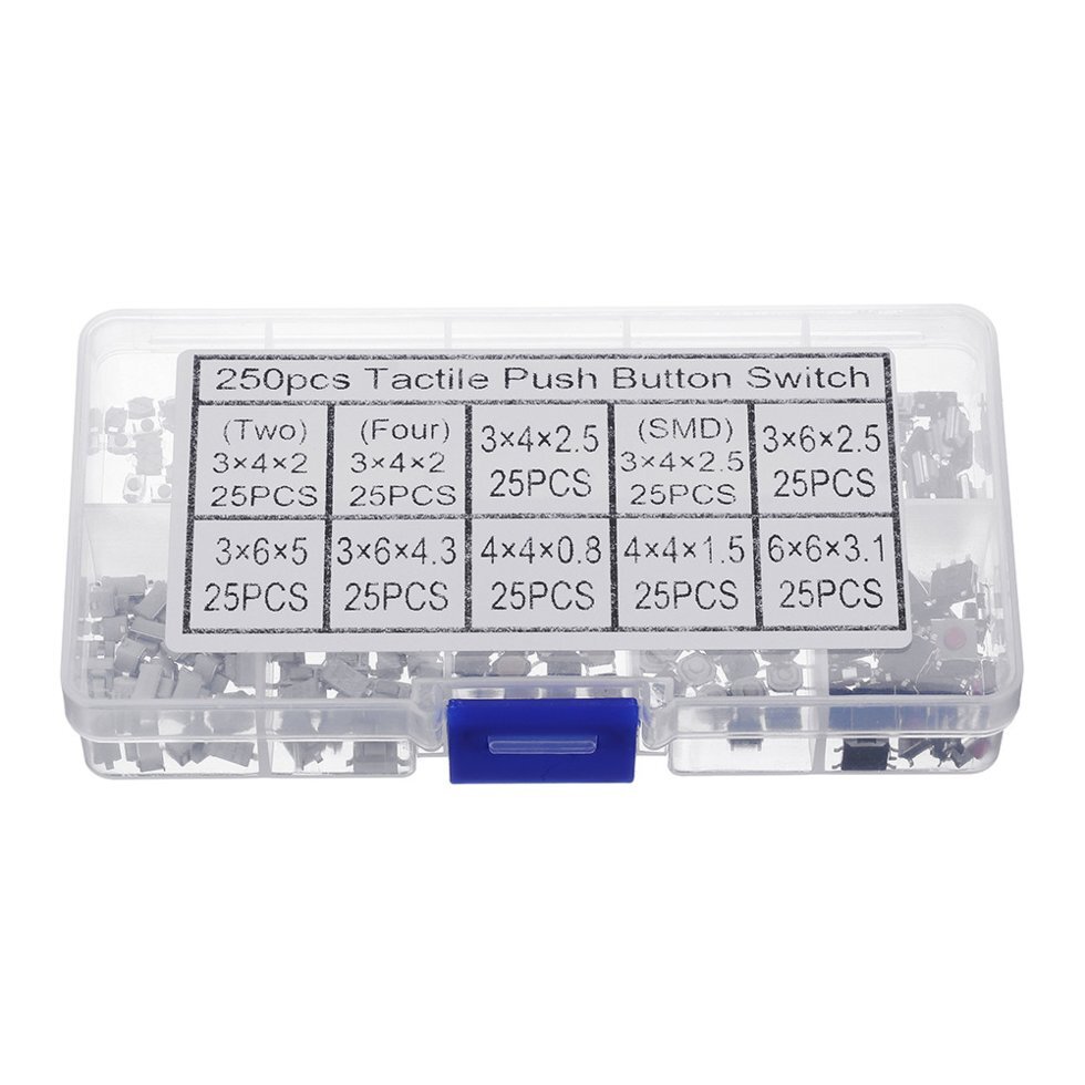 250 шт. 10 Типы Тактильные Кнопочные Сенсорный Выключатель Дистанционный Клавиши Кнопки Микропереключатель для