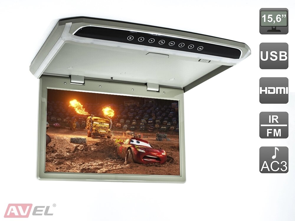 Потолочный монитор 15,6" со встроенным Full HD медиаплеером AVS1507MPP (серый) Антисептик-спрей для рук в подарок!