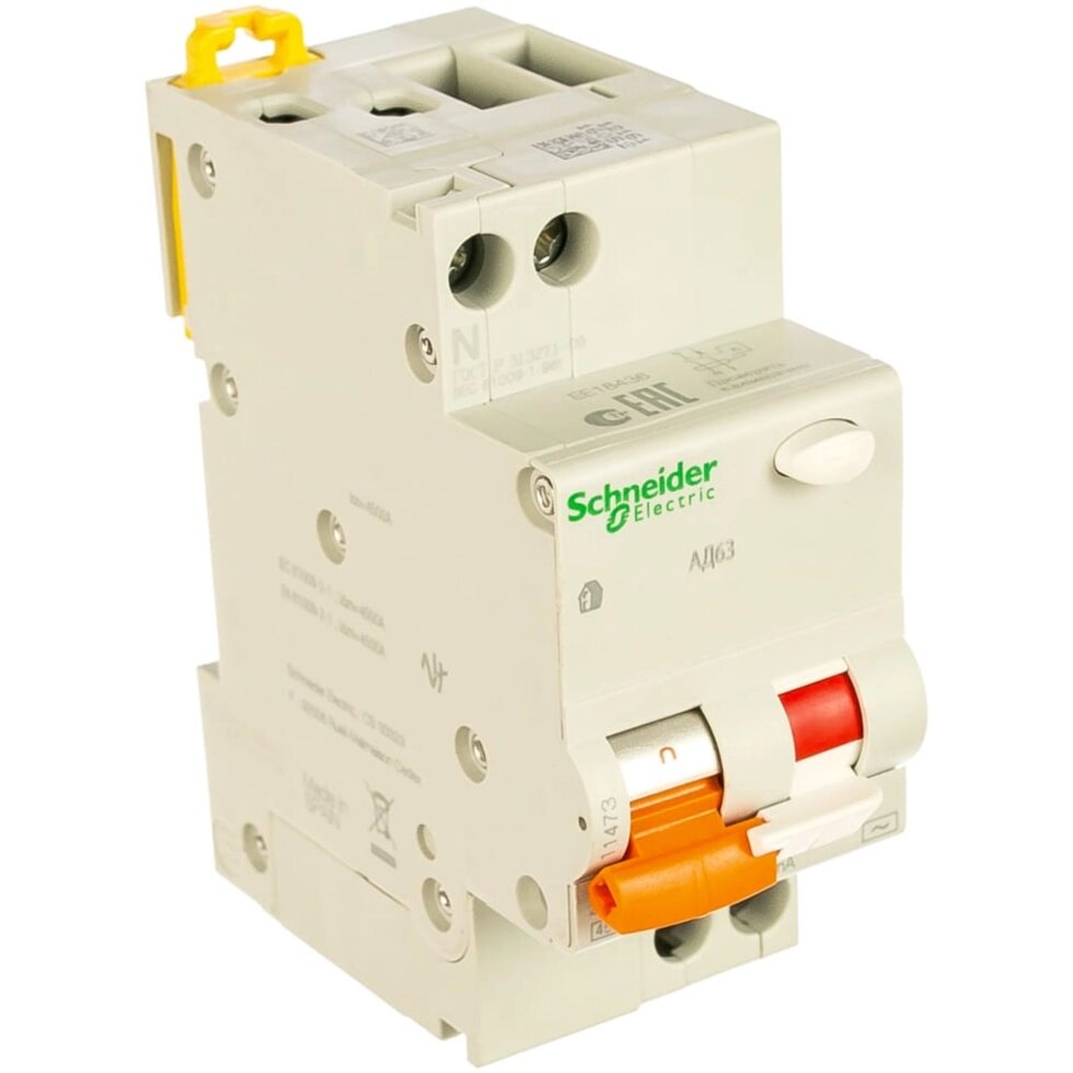 Дифференциальный автоматический выключатель schneider electric 1p+n 16а 30ma домовой ад63 11473
