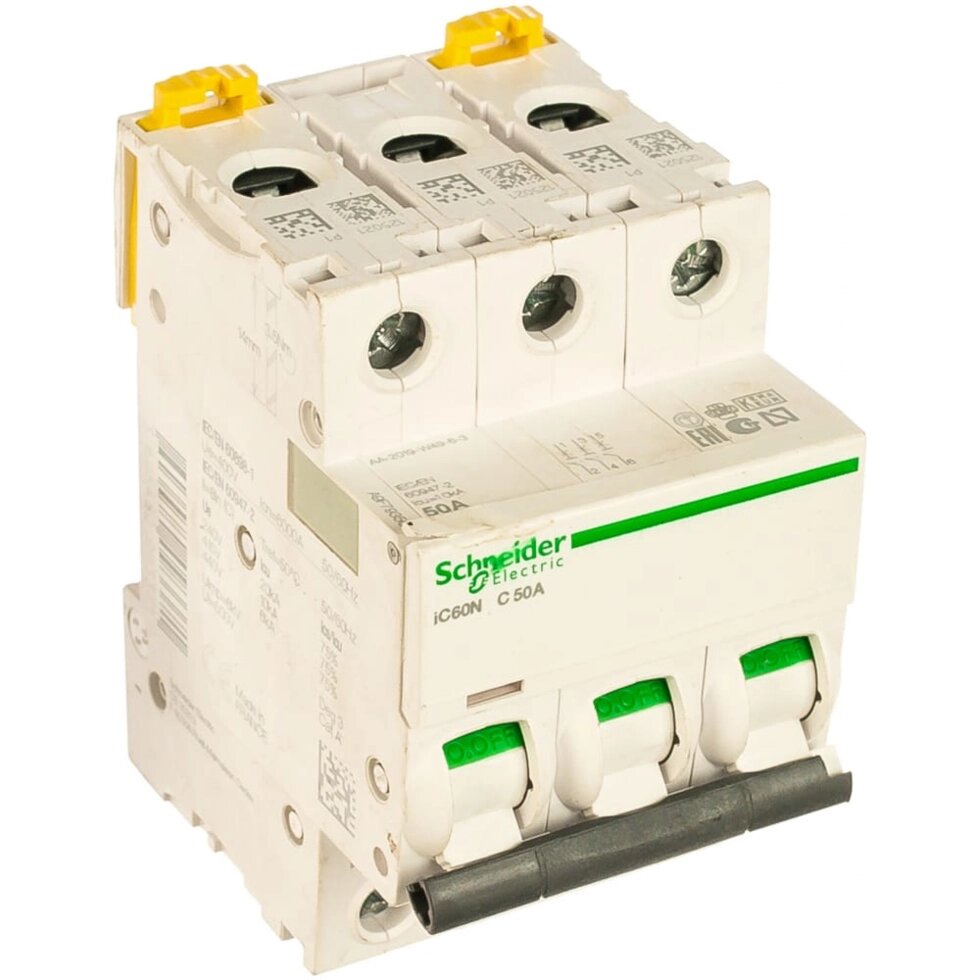 Автоматический модульный выключатель acti9 ic60n 3п c 50а 6ка schneider electric a9f79350