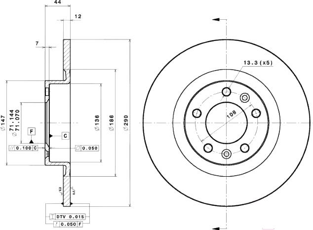 - Диаметр диска/барабана 290 мм