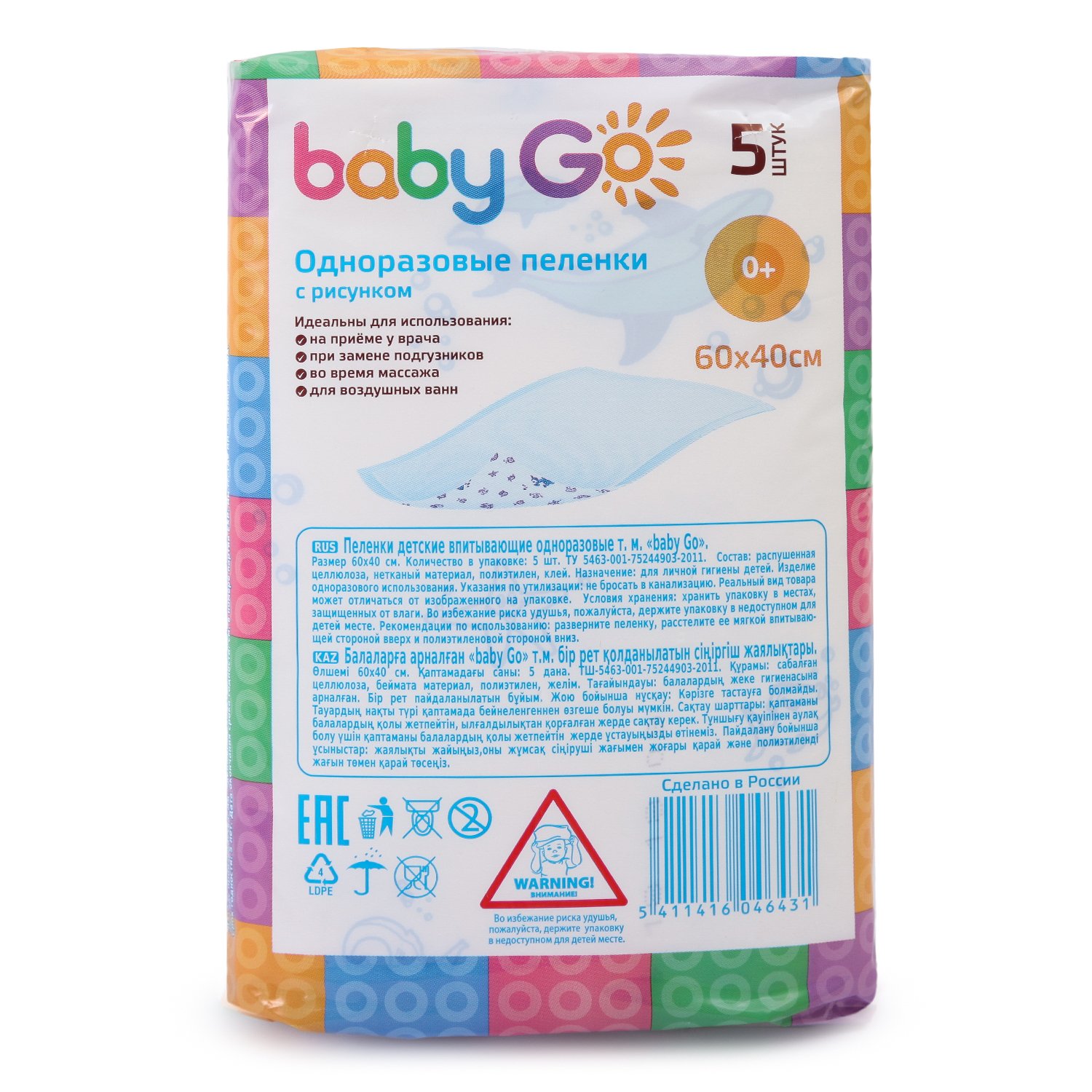 Пеленки Baby Go 40х60 см 5 шт 762421231