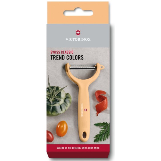 Нож для чистки томатов и киви VICTORINOX, двустороннее зубчатое лезвие, бежевая рукоятьКулинария - это искусство, в котором мы себя реализуем. Как хозяин своей кухни, Вы достойны правильных инструментов для выражения своего творчества - таких, как универсальная овощечистка Victorinox. Её лезвие с серрейторной заточкой готово снять самую толстую кожуру, а удобная эргономичная ручка сделает приготовление пищи увлекательным и лёгким.Особенности:Идеально подходит для точной чистки помидоров и плодов кивиШвейцарская овощечистка с серрейторным лезвиемС ультра-острой серрейторной кромкой лезвия и эргономичной ручкой Материал рукояти: полипропиленМатериал лезвия: нержавеющая стальТип режущей кромки: серрейторнаяДлина: 145 ммШирина: 72 ммВысота: 20 ммВес нетто: 25 гВес брутто: 37 гУпаковка: складная картонная коробкаПригодность для мытья в посудомоечной машине: даЦвет: бежевый