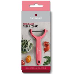 Нож для чистки томатов и киви VICTORINOX, двустороннее зубчатое лезвие, малиновая рукоятьКулинария - это искусство, в котором мы себя реализуем. Как хозяин своей кухни, Вы достойны правильных инструментов для выражения своего творчества - таких, как универсальная овощечистка Victorinox. Её лезвие с серрейторной заточкой готово снять самую толстую кожуру, а удобная эргономичная ручка сделает приготовление пищи увлекательным и лёгким.Особенности:Идеально подходит для точной чистки помидоров и плодов кивиШвейцарская овощечистка с серрейторным лезвиемС ультра-острой серрейторной кромкой лезвия и эргономичной ручкой Материал рукояти: полипропиленМатериал лезвия: нержавеющая стальТип режущей кромки: серрейторнаяДлина: 145 ммШирина: 72 ммВысота: 20 ммВес нетто: 25 гВес брутто: 37 гУпаковка: складная картонная коробкаПригодность для мытья в посудомоечной машине: даЦвет: малиновая