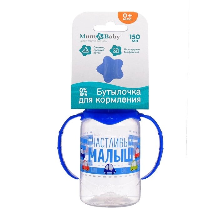 Бутылочка для кормления «Малыш» детская классическая, с ручками, 150 мл, от 0 мес., цвет синий