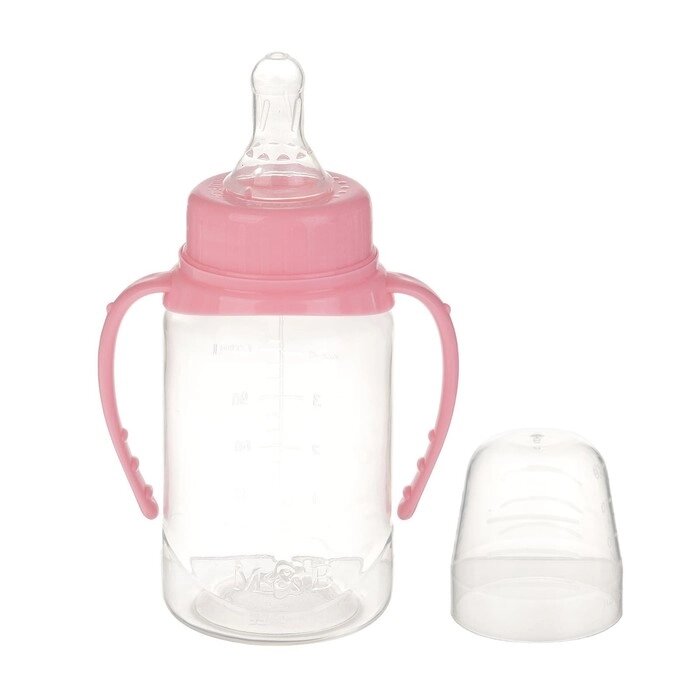 Бутылочка для кормления детская классическая, с ручками, 150 мл, от 0 мес., цвет розовый