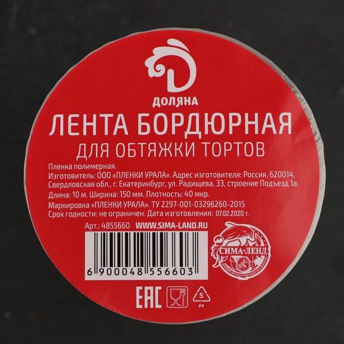 Лента бордюрная для обтяжки тортов Доляна, 40 мкр 150 мм 10 м