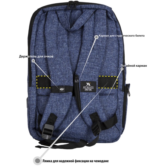 рюкзака - скрытая молния. Ни один вор не сможет открыть этот рюкзак и