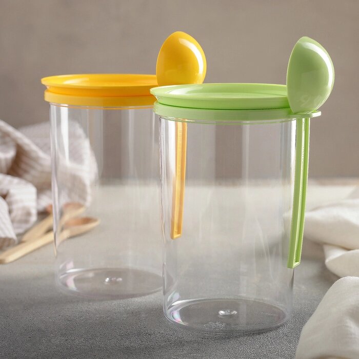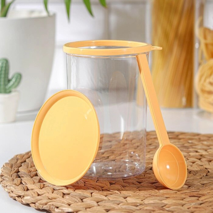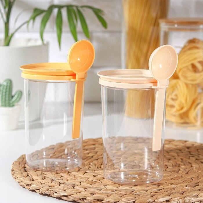 Банка для сыпучих продуктов, 700 мл, с ложкой, цвет МИКС