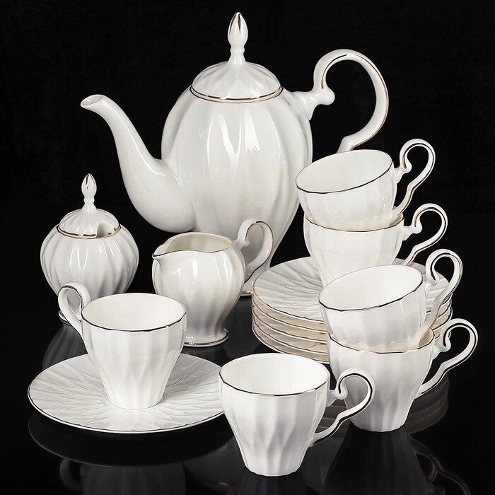 Сервиз чайный 'Вивьен'15 предметов чайник 1 л, молочник 150 мл, сахарница 180 мл, 6 чайных пар 160 мл