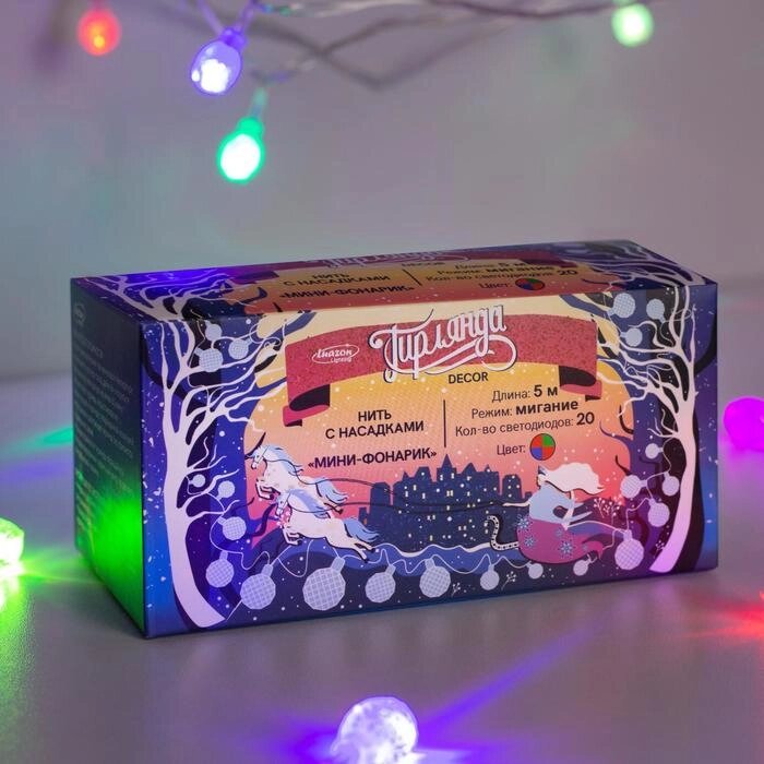 Гирлянда 'Нить' 5 м с насадками 'Фонарики'IP20, прозрачная нить, 20 LED, свечение мульти, мигание, 220 В