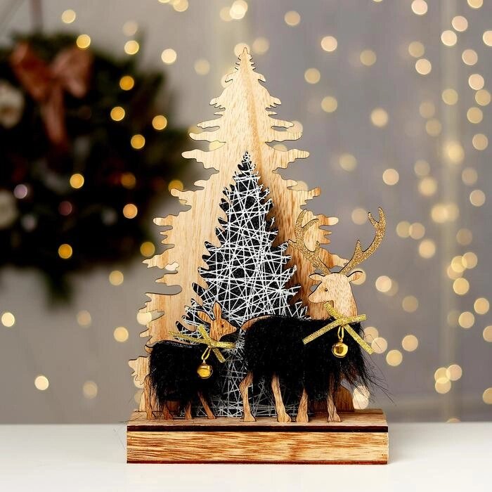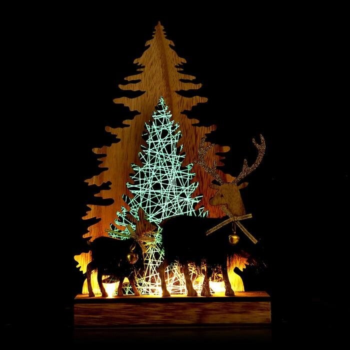 Новогодний декор с подсветкой 'Ёлочки и олень с олененком'18х7х29 см зелёный