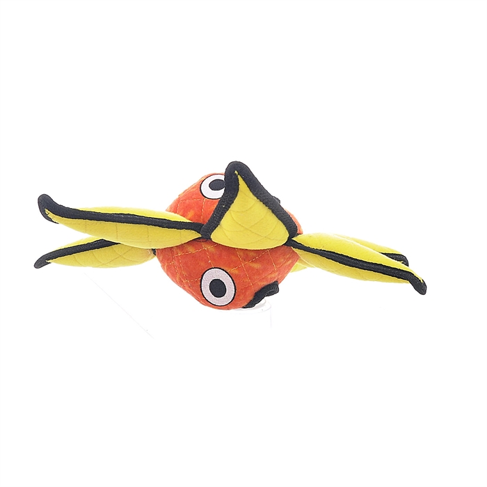 Игрушки «Tuffy» могут иметь до 4 слоев материала в зависимости от формы, размера и стиля игрушки. Наша серия «Превосходство» может иметь до 2 слоев супер прочного материала, используемого в производстве дорожных сумок и чемоданов. Отдельные слои материала покрыты слоем пластика чтобы удерживать волокна вместе. Наконец, мы используем мягкий флис для внешнего слоя.