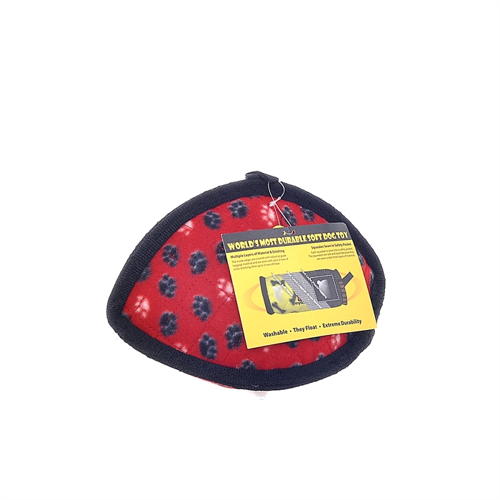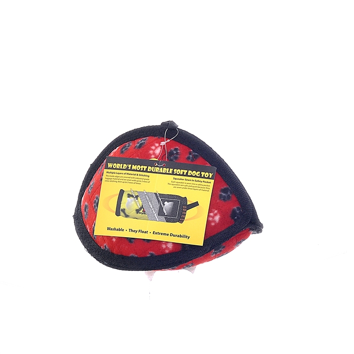 Игрушки «Tuffy» могут иметь до 4 слоев материала в зависимости от формы, размера и стиля игрушки. Наша серия «Превосходство» может иметь до 2 слоев супер прочного материала, используемого в производстве дорожных сумок и чемоданов. Отдельные слои материала покрыты слоем пластика чтобы удерживать волокна вместе. Наконец, мы используем мягкий флис для внешнего слоя.