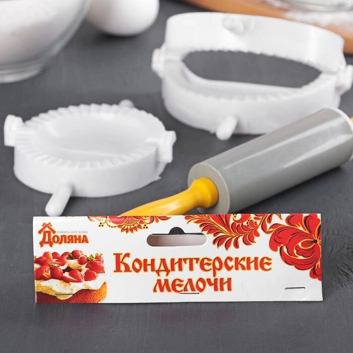 Набор для лепки пельменей Доляна, 3 предмета, формы d=7,5 и 10 см, скалка МИКС