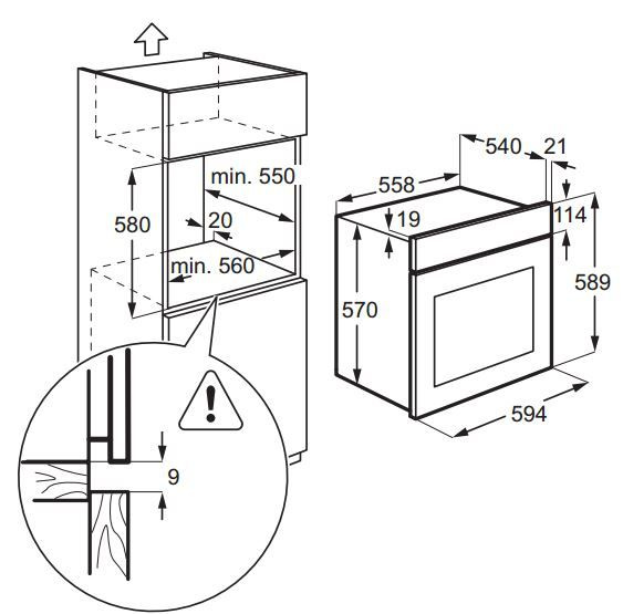 • Размеры для встраивания духовки 560x600x550мм