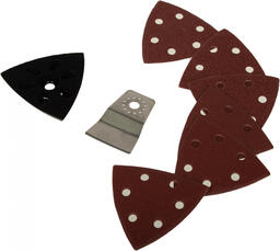 • Дополнительно в комплекте 6 шлифлистов (3*P60/3*P120), скребок, переходник для пылеудаления