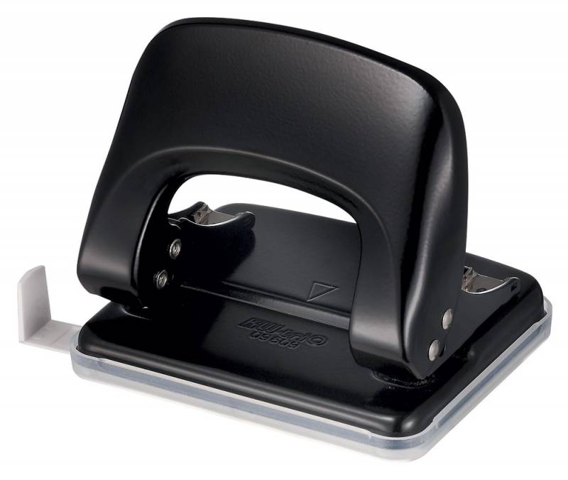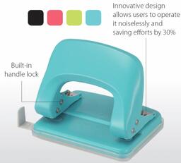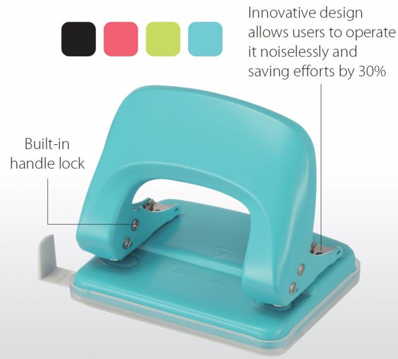 • Особенности Дырокол на 30 листов, встроенная линейка, металлический корпус, прозрачный поддон, ассорти (черный, красный, салатовый, голубой).