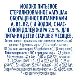 Молоко Агуша стерилизованное 2,5% 200мл 9015153
