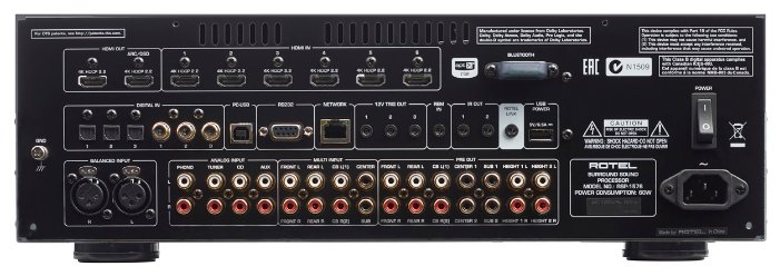 - Входы HDMI x6, коаксиальный x3, оптический x3, 7.1CH x1, балансный x1, Phono