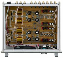 - Используемые электронные компоненты лампы 6H30P х 8 в предварительном усилителе и 6550C х 2, 6H30P х 2 в блоке питания