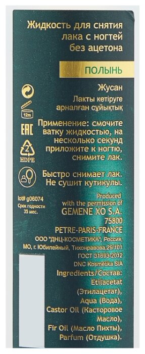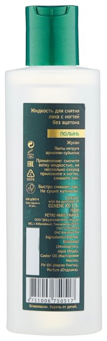 - Состав etilacetat (этилацетат), aqua (вода), castor oil (касторовое масло), fir oil (масло пихты), parfum (отдушка)