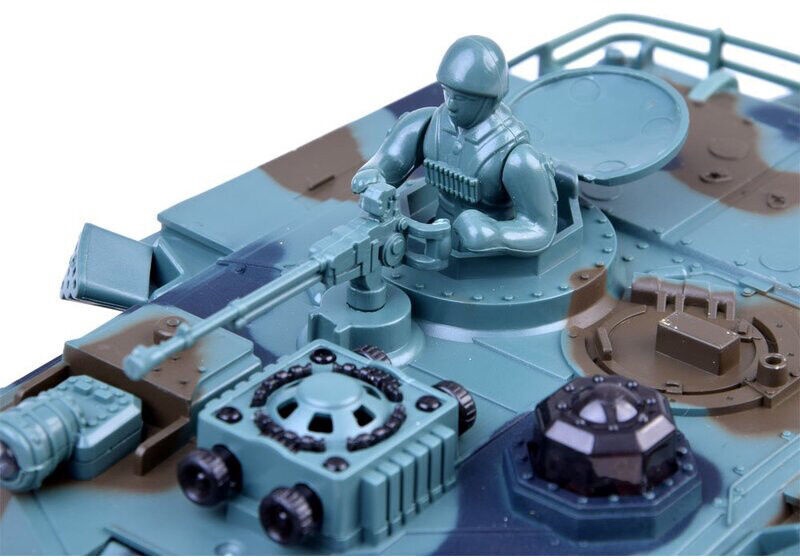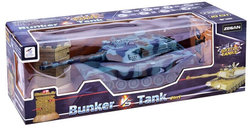 Papildoma informacijaNuotoliniu būdu valdomas karinis tankas su bunkeriu, tinka berniukams, mėgstantiems karo žaidimus. Garso efektai: variklio triukšmas, patrankos garsas, kulkosvaidžio garsas, karinė muzika.