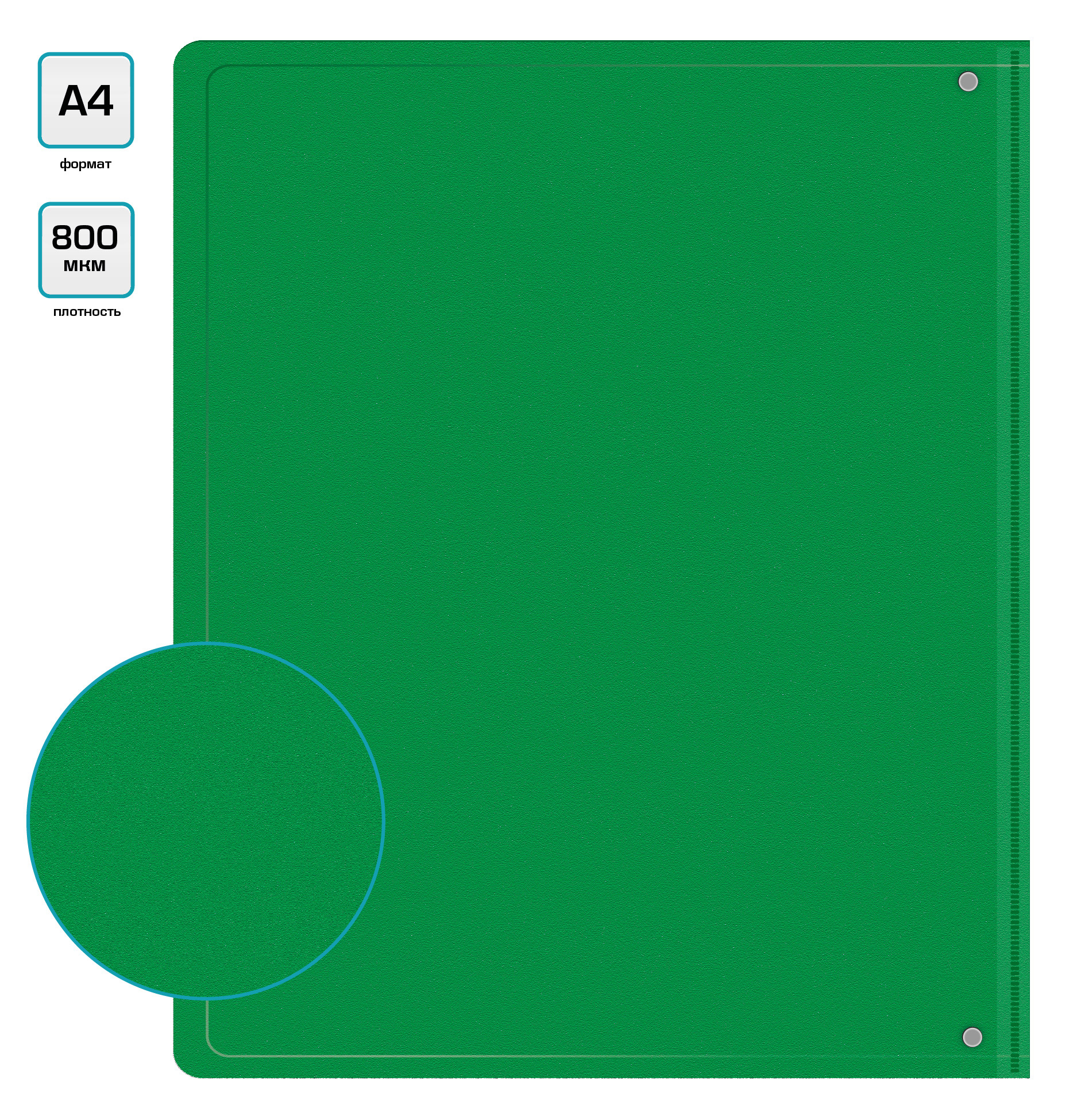 Папка на 2-х D-кольцах Бюрократ -0840/2DGRN A4 пластик 0.8мм кор.40мм внутр. с вставкой зеленый
