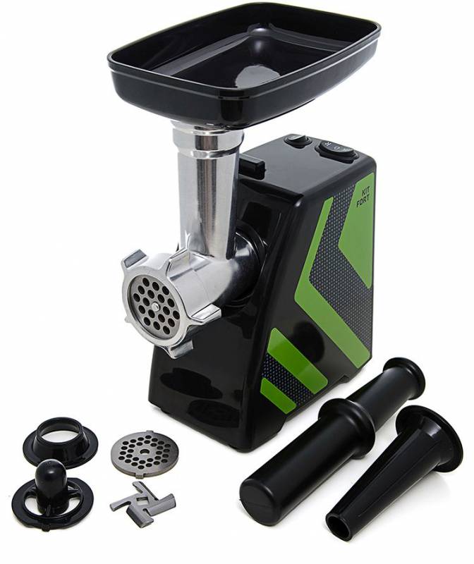 • Дополнительные насадки В комплект входят решетки для изготовления фарша с отверстиями 5 и 7 мм, а также специальные насадки для колбас и кеббе.