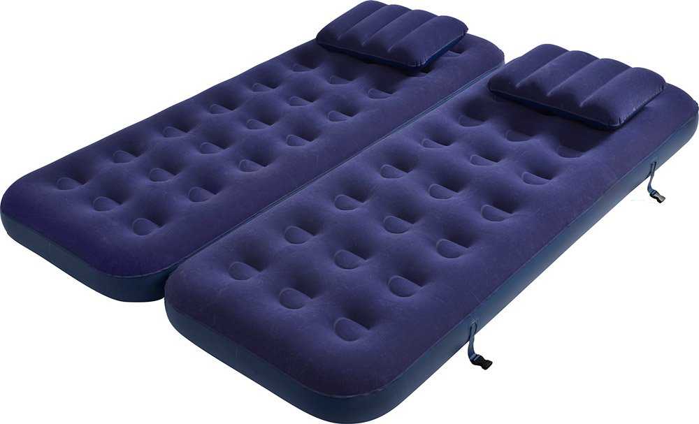 Многофункциональная надувная кровать 3-в-1. Варианты использования: двуспальная кровать, 2 односпальные кровати или 1 односпальная кровать на опоре. Прочная конструкция из ПВХ с кольцевыми переборками. Водоотталкивающее флоковое покрытие, предотвращающее соскальзывание простыни. 2 надувные подушки. Клапан 2-в-1 для быстрого надувания и сдувания. Размеры: 191x73x22 см.