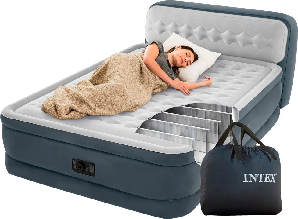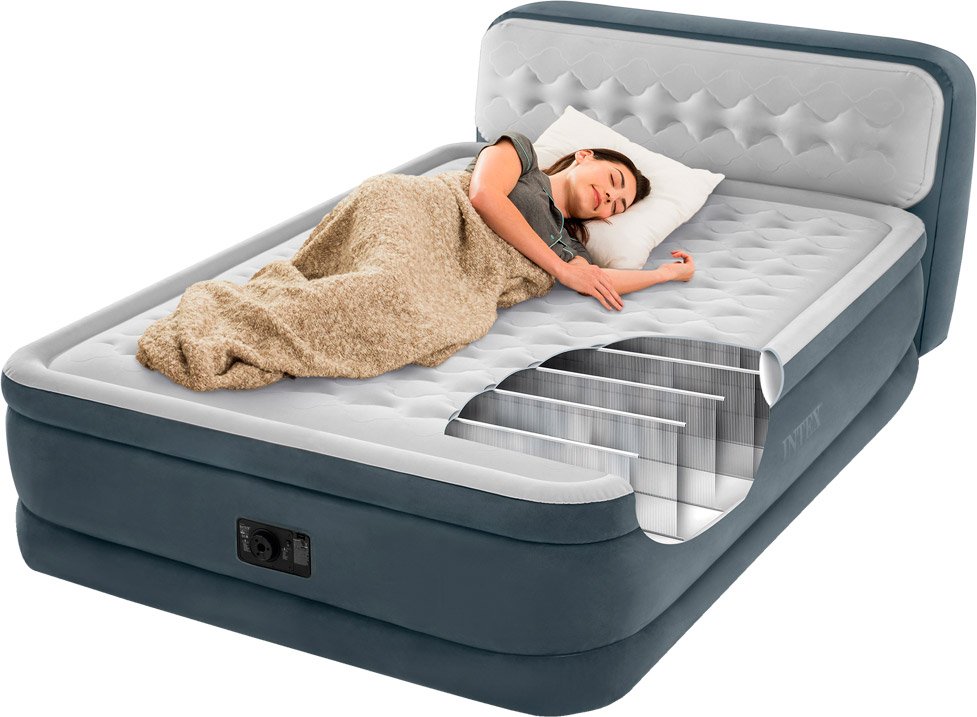Двухместная надувная кровать со спинкой. Технология Fiber-Tech Dura-Beam: внутренняя конструкция из высокопрочных полиэфирных волокон, которые не деформируются со временем. Материал: ПВХ с флокированным покрытием. Встроенный электронасос. Самоклеящаяся заплатка. Сумка для хранения и переноски. Максимальная нагрузка: 273 кг. Размеры: 236x152x46/86 см.