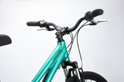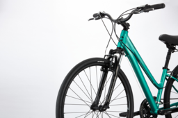 Горный, женский, с амортизационной вилкой, материал рамы - сплав алюминия, колеса - 28 ", трансмиссия 24 скор, Тормоза: передний - ободной, задний - ободной.