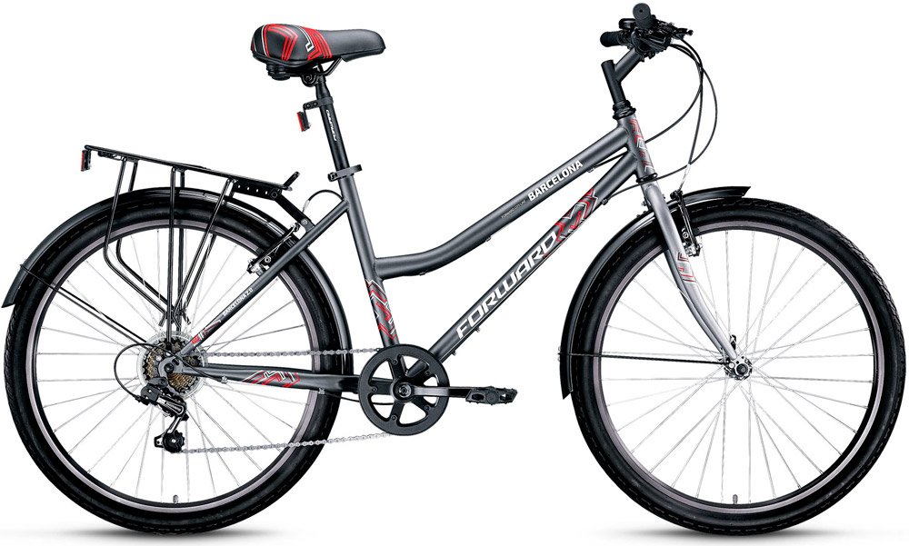 Городской, без амортизации, материал рамы - сталь, колеса - 26 ", трансмиссия 7 скор, Тормоза: передний - ободной, задний - ободной.