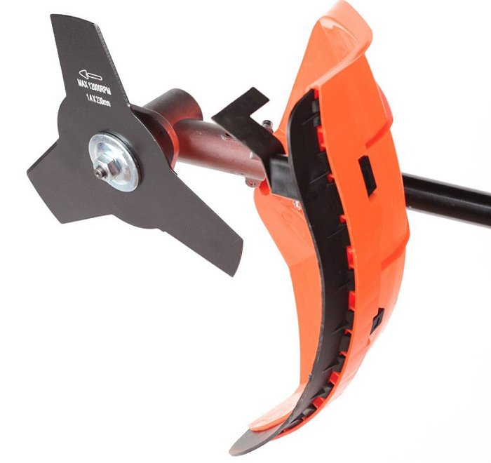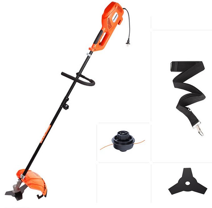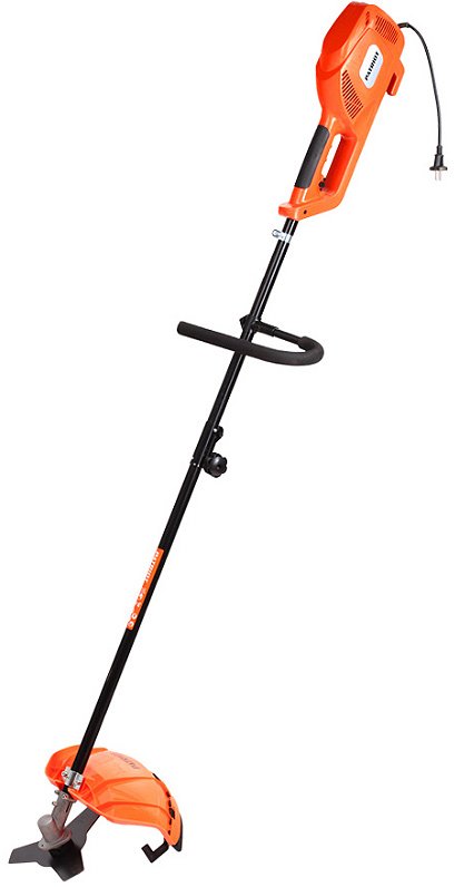 Электрический, Мощность 1000 Вт, леска, металлический нож, диаметр лески 2.4 мм, ширина кошения леской 46 см, вес 6.7 кг.