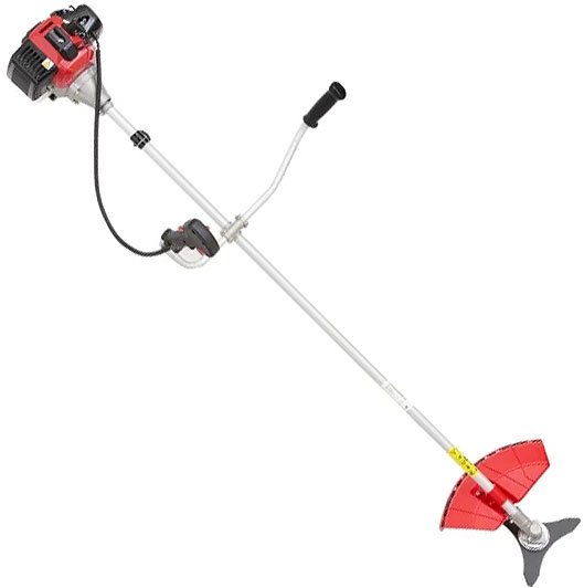 Бензиновый, Мощность 1320 Вт, объем двигателя 33 см3, металлический нож, леска, диаметр лески 2 мм, ширина кошения леской 42 см, ширина кошения ножом 25.4 см, вес 8.2 кг.