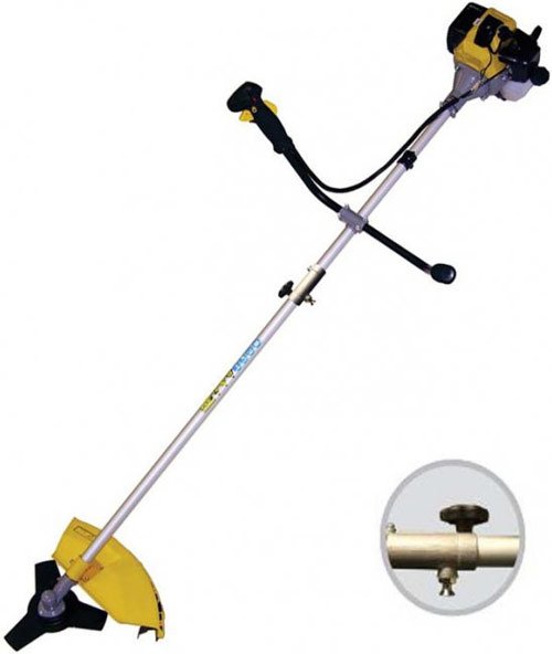 Бензиновый, Мощность 900 Вт, объем двигателя 32.6 см3, леска, металлический нож, ширина кошения леской 40 см, ширина кошения ножом 25.5 см, вес 7.2 кг.