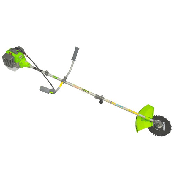 Бензиновый, Мощность 2000 Вт, объем двигателя 52 см3, металлический нож, леска, ширина кошения леской 30 см.