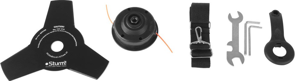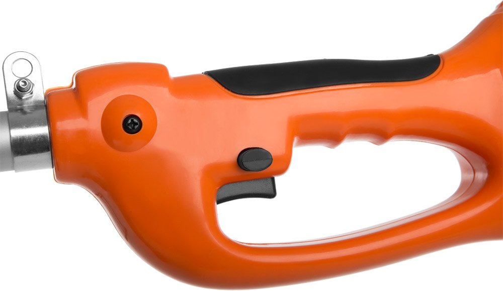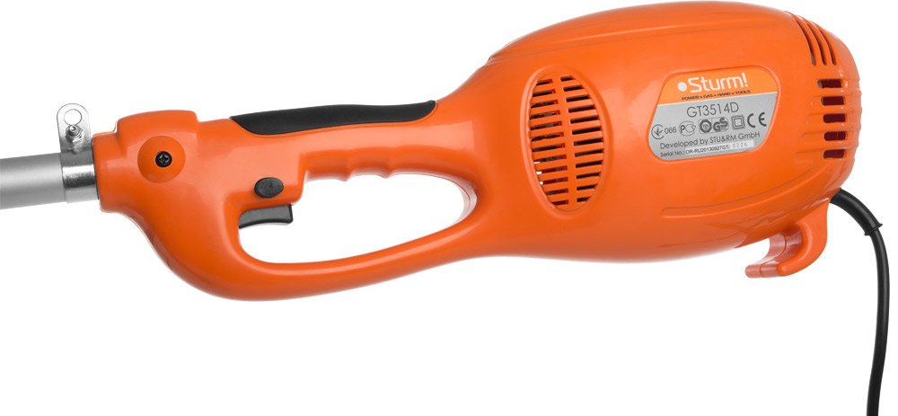 Электрический, Мощность 1400 Вт, леска, металлический нож, диаметр лески 2 мм, ширина кошения леской 40 см, ширина кошения ножом 40 см, вес 7.5 кг.