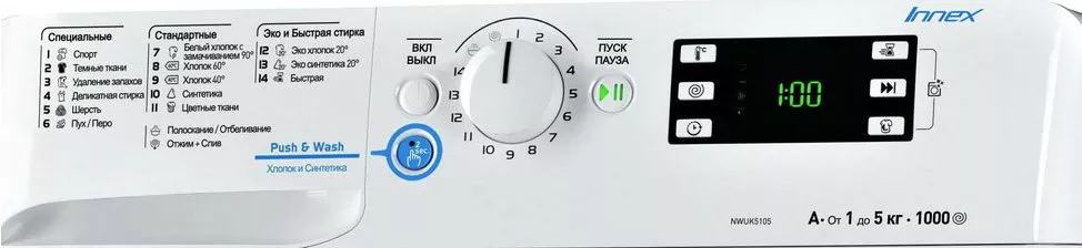Отдельно стоящая стиральная машина; барабанного типа; фронтальная загрузка; 5 кг; количество программ 16; класс энергопотребления А; материал бака пластик; индикация ошибок, отложенный старт; контроль пенообразования, контроль дисбаланса, защита от протечек, защита от детей; ширина 59.5 см.
