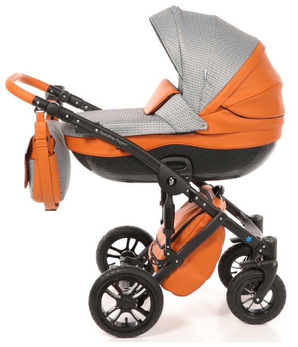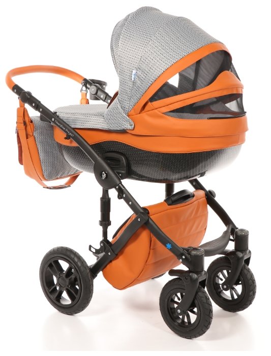 ОсобенностиЭКО-кожа и жаккард; на задних колесах торсионная амортизация закрытого типа, передние колеса со встроенной системой амортизации «Anti shock», рама коляски имеет дополнительную амортизацию с регулировкой степени жесткости и отдельной системой блокировки амортизации полностью «on/off»