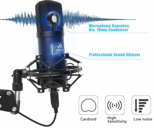 Речевой, конденсаторный, однонаправленный, 38 дБ, защита от ветра, USB.