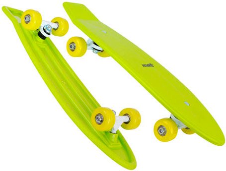 Детский пенниборд из полипропилена. Размер деки: 21x5.75". Подвеска: алюминий, 3.25". Колеса: PU, 50x30 мм., жесткость 92A. Подшипники: АВЕС 5. Максимальная нагрузка: 50 кг. 2 цветовых варианта.