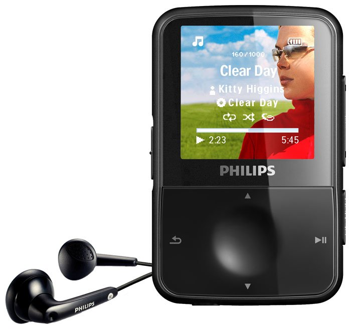 Встроенная память 4 Гб; экран 1,5 "; проигрывание видео; USB; FM-тюнер, запись с радио, будильник, диктофон; поддержка WAV, WMA, MP3.