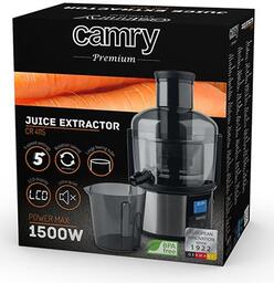 Центробежная соковыжималка; мощность 1500 Вт; количество скоростей 5; объём резервуара для сока 1 л; выброс мякоти автоматический; материал корпуса нерж. сталь; прямая подача сока; система блокировки; лёгкая чистка.