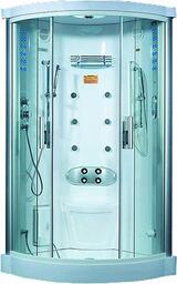 Душевая кабина с гидромассажем размером 215 х 100 х 100 см. Массаж стоп, спины, пояса. Тропический душ. Турецкая баня. Вентиляция. Аромотерапия. Озонотерапия. Система дезинфекции. Электронная панель управления. Температурный датчик. Раздвижные двери из прозрачного стекла. Зеркало. Полки. Пульт дистанционного управления.