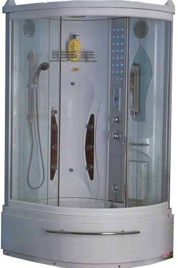 Душевая кабина радиальной формы для углового монтажа - левая асимметрия. Размер 118х90х212 см. Акриловый поддон высотой 42 см с антискользящим покрытием и металлическим каркасом жесткости. Раздвижные двери из закаленного матового стекла толщиной 5 мм. Алюминиевый белый профиль. 6 гидромассажных форсунок, массаж стоп, тропический душ.