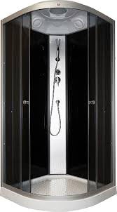 Душевая кабина размером 100x100x215 см. Раздвижные двери из тонированного стекла толщиной 4 мм. Акриловый поддон. Высота поддона: 15 см.