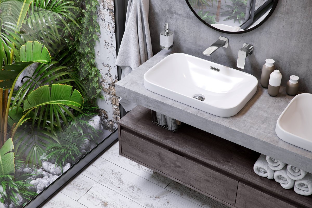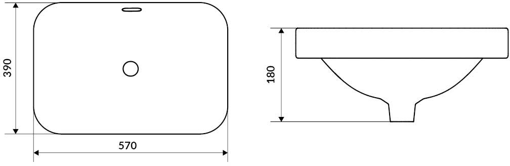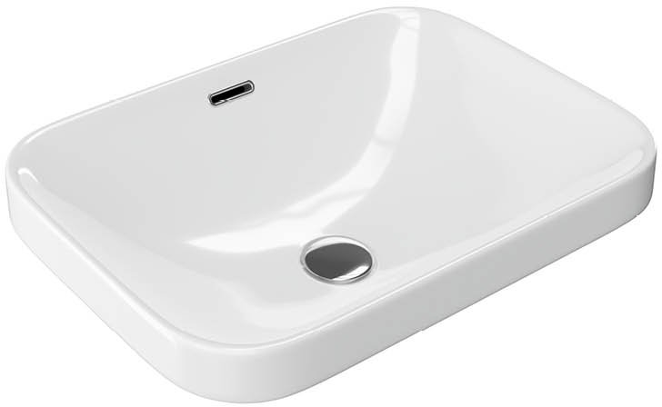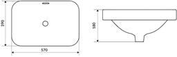 Умывальник врезной, на столешницу, ширина 570 мм, длина 390 мм, форма: прямоугольная, санитарная керамика, отверстие под перелив.