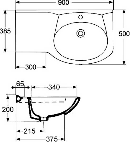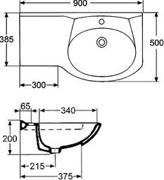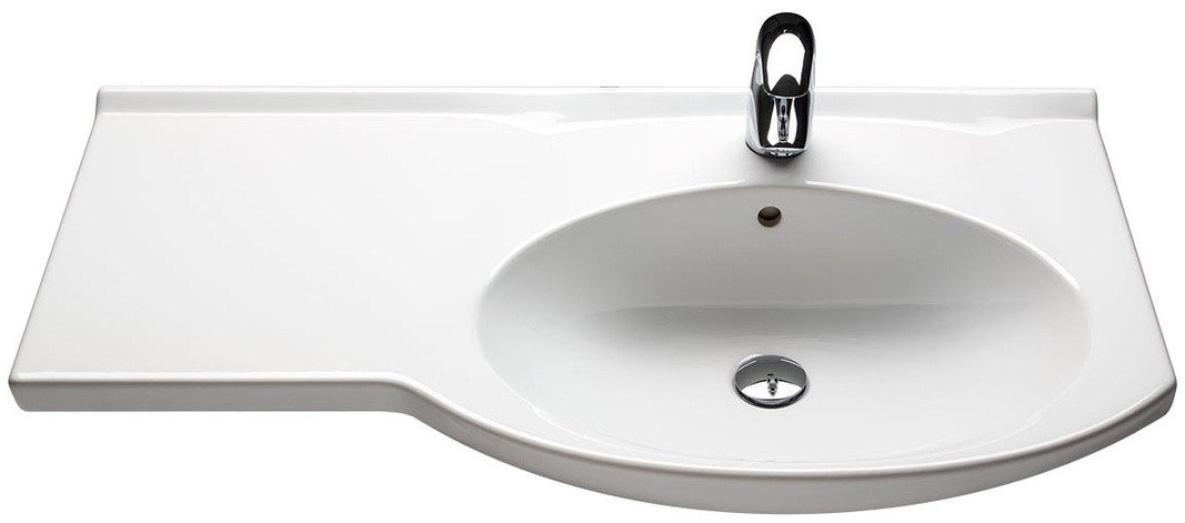 Умывальник на столешницу, на тумбу, на кронштейны, ширина 900 мм, длина 500 мм, форма: прямоугольная, санитарная керамика, отверстие под смеситель, отверстие под перелив.